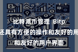 比特派币管理 Bitpie钱包还具有方便的操作和友好的用户